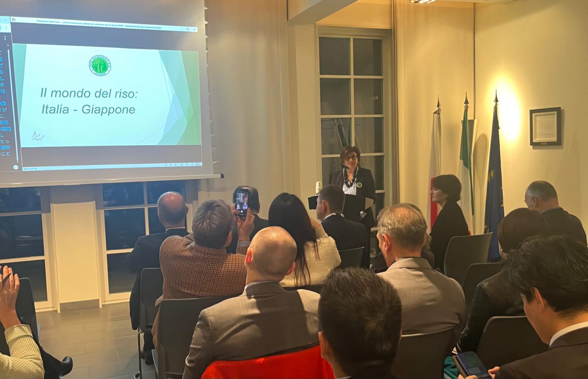 E’ stato proiettato il video “Italian Ricelands”, dedicato ai paesaggi e alla tradizione risicola italiana. A seguire, la presidente dell’Ente Nazionale Risi, Natalia Bobba, ha illustrato il tema “Il mondo del riso: Italia e Giappone, due culture a confronto”, mettendo in evidenza le affinità e le differenze tra due paesi che condividono una lunga tradizione nella coltivazione e nel consumo del riso.